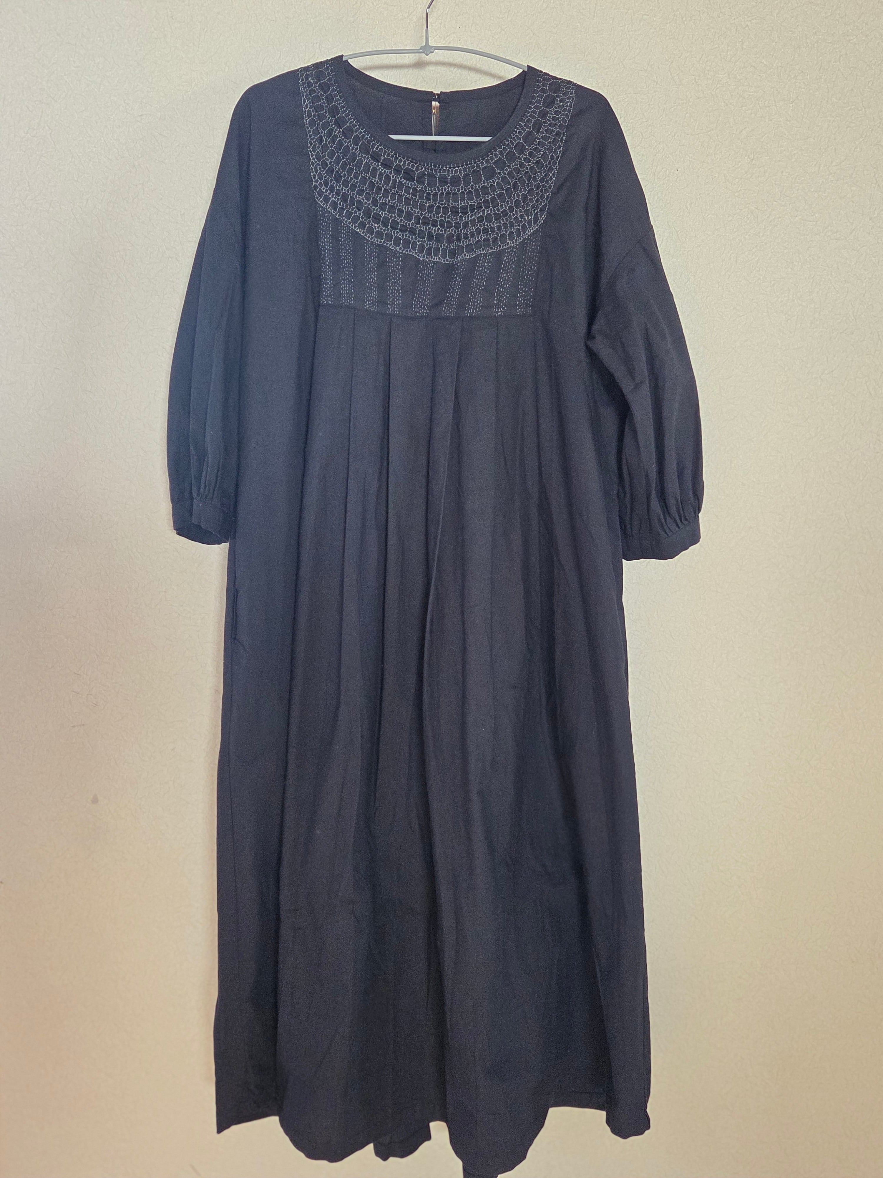 こちらのワンピースは、特別な日のお出かけに華やかさを添える一枚として、また、日常のカジュアルスタイルにもぴったりです。ブラックの落ち着いた色合いは、どんなシーンにも上品さを添えます。
