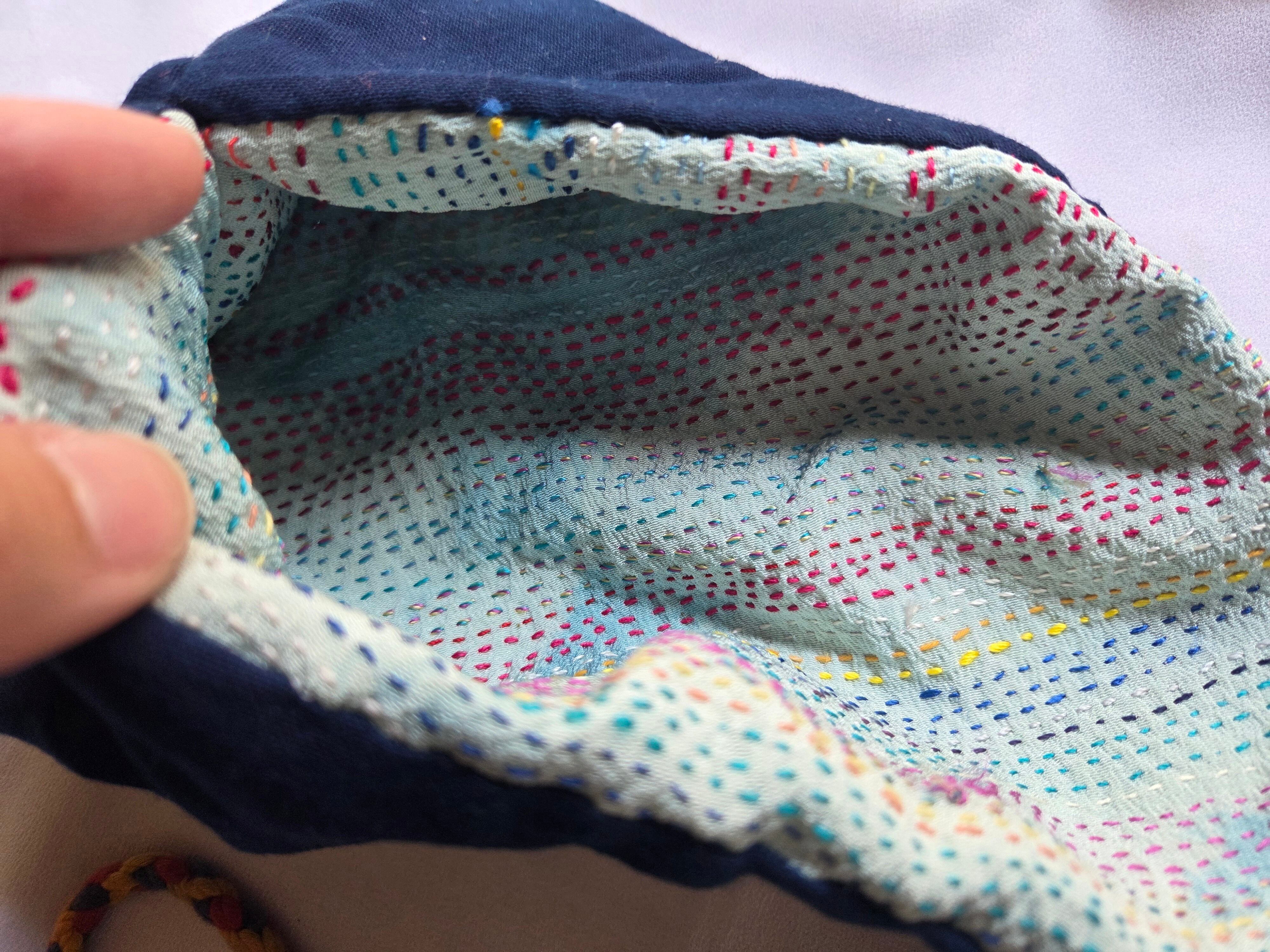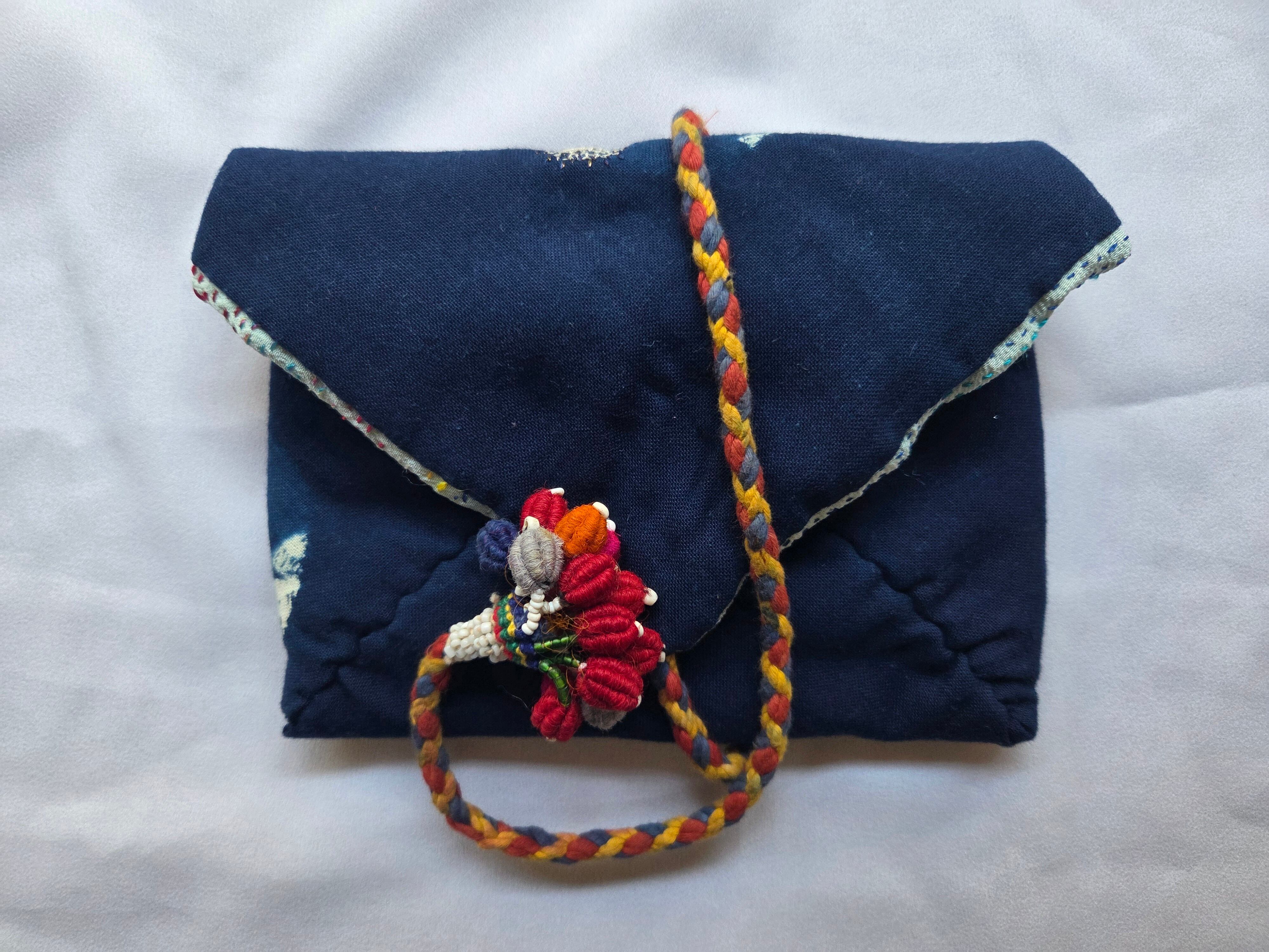 手刺繍と藍染が生み出す、唯一無二の巻きポーチです。